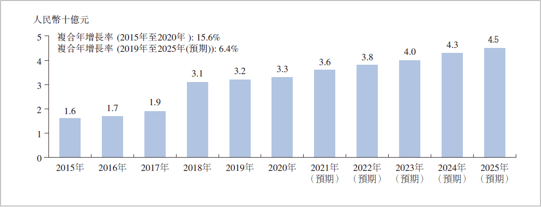 以销售收入计算,海参苗养殖业的市场规模由2015年的约人民币16亿元增加至2020年的约人民币33亿元,复合年增长率约为15.6%。大众消费目前占海参消费市场总量超过70%。于2020年,海参幼苗养殖市场的产值达约人民币33亿元。在需求日益增加及价格回暖的推动下,预计到2025年海参养殖市场将达到人民币45亿元,在2020年至2025年之间的复合年增长率约为6.4%。