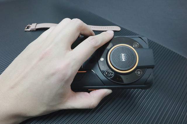 AGM G1 Pro虽然比较重但是握感还是不错的,手机因为极其结实所以可以随便裸奔了,背部的防滑颗粒凸起可以让使用者完全无视手心上的汗。