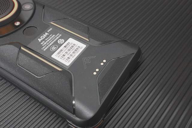 AGM G1 Pro还有四个触电,这个是为手机座充准备的,但是这个座充需要另购,手机包装内自带一个普通充电器。