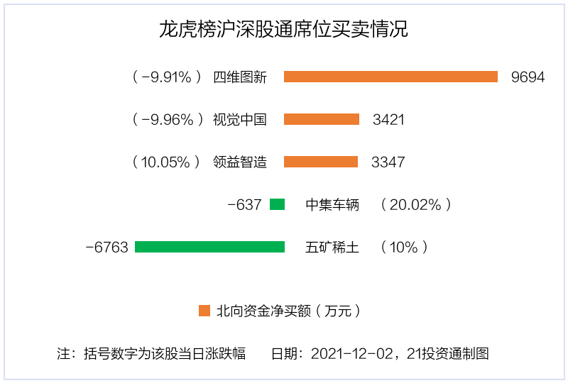 值得注意的是,机构和北向资金共同净买入了视觉中国等1股;共同净卖出了中集车辆;在四维图新,领益智造,五矿稀土上出现分歧,机构净卖出四维图新4315.44万元,北向资金净买入9694.44万元;机构净卖出领益智造1776.82万元,北向资金净买入3347.43万元;机构净买入五矿稀土2263.22万元,北向资金净卖出6763.11万元。