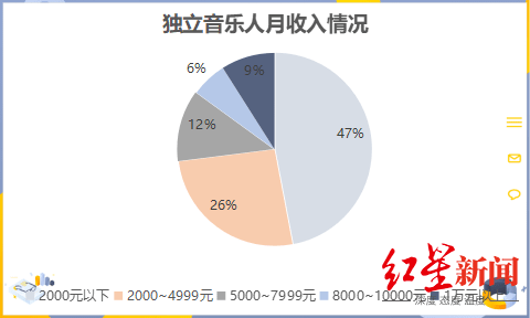 据中国传媒大学发布的《2019中国音乐人生存状况报告》显示,绝大多数独立音乐人仍生存艰难,近半数独立音乐人的税前月收入在2000元以下。