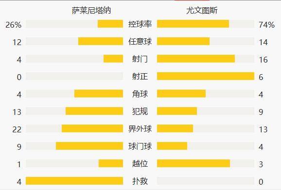 全场比赛结束,尤文在客场2-0击败萨勒尼塔纳。