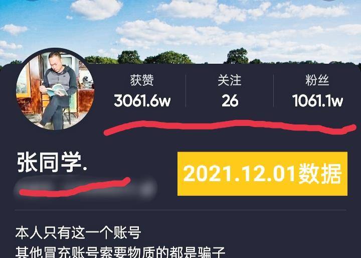 其实在写这篇文章,每次翻开“张同学”短视频主页的时候都发现自己眼睛是不是花了,因为每次翻开主页,粉丝数据都不一样,我怕手速过慢,数据太陈旧。
