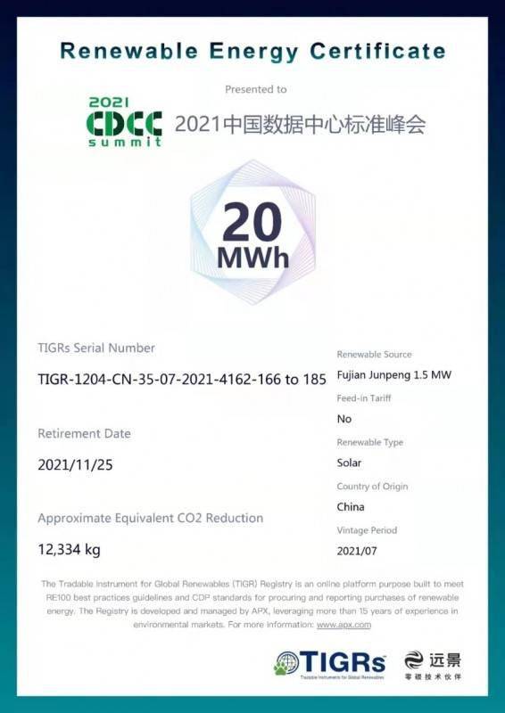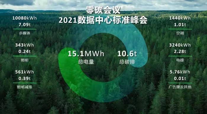 据第三方机构碳足迹评估测算,2021数据中心标准峰会的各会场,在本届峰会期间二氧化碳排放当量约为10.6吨,通过节能减排和采购绿证的方式实现了数据中心行业首场“零碳会议”的落地。