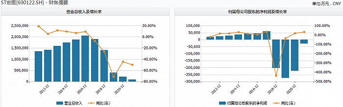 从业绩表现来看,ST宏图业绩继续走低,2018年至2020年及2021年1月-9月,该公司分别亏损20.34亿元、27.35亿元、22.16亿元、2.81亿元,累计亏损额达72.66亿元。期间,ST宏图曾因连续亏损于2020年4月一度沦为“*ST宏图”,被新黄金城登录实施退市风险警示。随后,尽管该公司在新规后解除强制退市风险,却仍被实施其他风险警示。