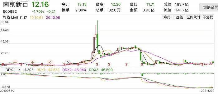 从股价来看,南京新百曾从2018年6月21日起连续收获8个跌停板,股价从6月21日开盘价35.21元/股持续走低至同年7月2日收盘的14.8元/股,跌幅近六成;此后其股价又于2020年4月28日跌至7.79元/股,创上市以来的最低价,较2018年6月21日开盘价跌77.88%。