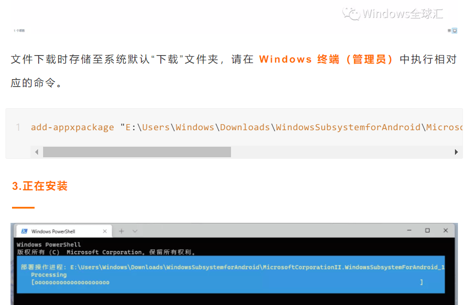 两周前,在微软中国官方微信号“微软科技”上,发布了一篇教程《抢先体验!如何在Windows11上运行Android应用》。其中涉及大量的命令行以及复杂的文件名,甚至还包含一个非微软官方的网址。