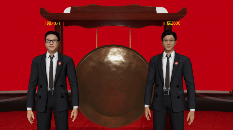 而备受关注的网易伏羲“元宇宙”分会场,不仅还原线下敲钟仪式的黑胶签到、大事件墙、音乐人墙等布置,参与观礼的嘉宾还可以操控自己的“数字分身”,见证网易云音乐上市。另外,两个AI虚拟人“丁磊”,他们分别被刻画成了2000年29岁的丁磊和2021年50岁的丁磊。会场上,两个“丁磊”都身着黑色西装,佩戴网易云音乐徽章,与线下的丁磊一起敲响了上市锣。