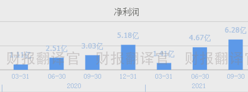 在2021年该企业的净利润不仅连续出现了增长,还在第三季度时完成了相当于去年的1.2倍业绩。