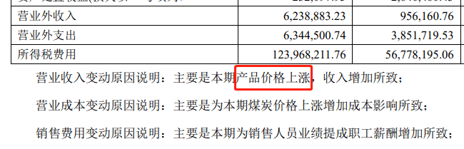 在该企业的财报中,也明确指出2021年公司营业收入的提高,主要是产品价格的上涨所致。
