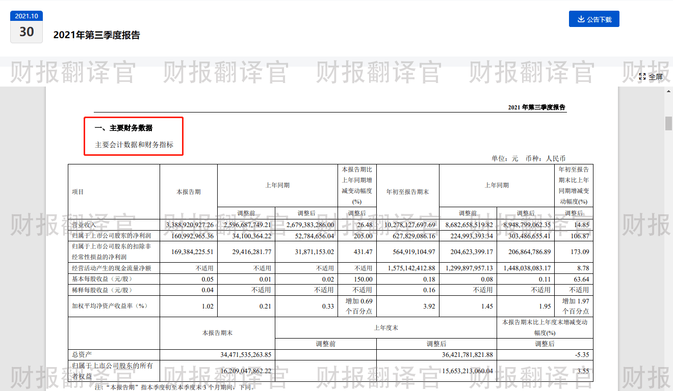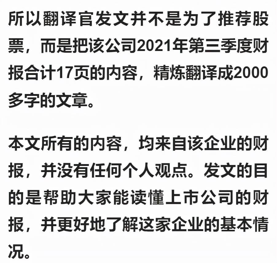 以下内容和财务数据均源自该公司2021年第三季度财报中,第8页的合并资产负债表,和第11页的合并利润表,并没有任何个人观点。