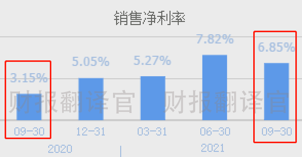 翻译官分析了公司财报中的主要财务数据,发现第三季度该企业净利润大幅上涨的主要原因是,新能源产品销售净利率的提高。