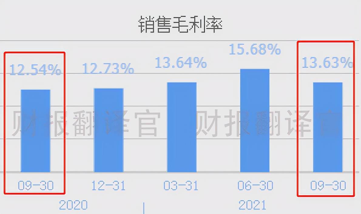 2020年第三季度,公司的销售毛利率为12.54%。到了2021年第三季度,销售毛利率达到了13.63%,同比增长了9%。