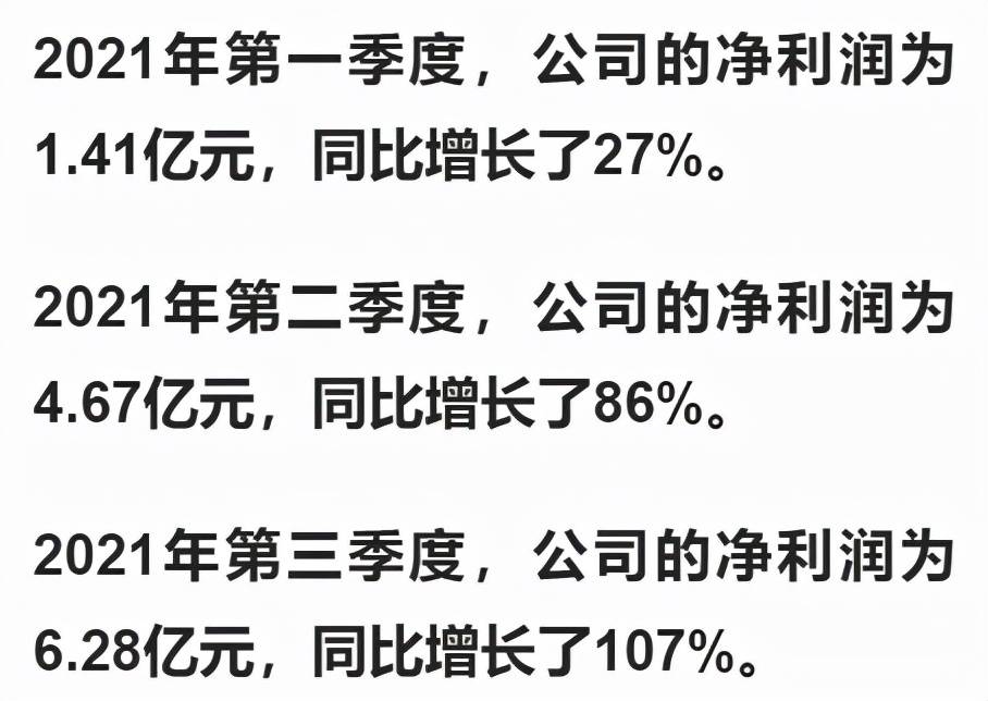 好在2021年,该企业净利润增长的引擎再次发出轰鸣声,公司的业绩连续三个季度实现了大幅度的增长。