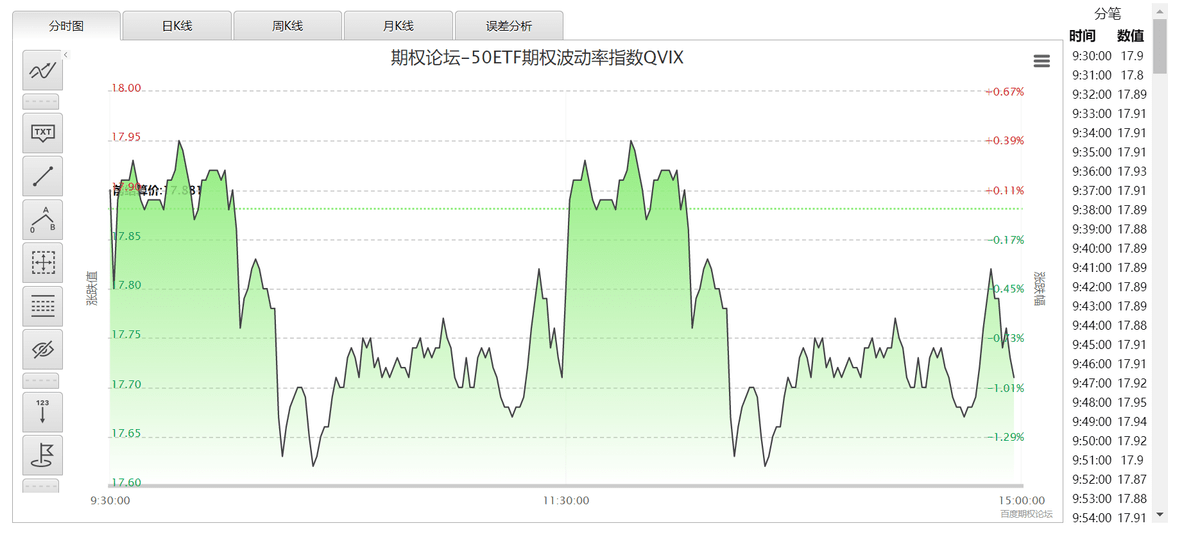 期权论坛波动率,波动率指数继续维持负相关走势,隔夜外围大跌,早盘恐慌情绪推动波指高开,但是未能延续升波,指数震荡横盘上冲关键点失败,两次回踩五日线支撑,波指整体呈现震荡降波,尾盘下跌超1%