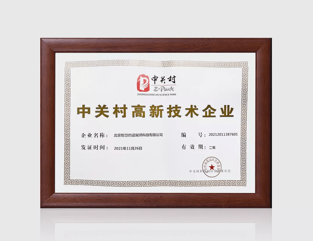 此次,北京智慧约读双师科技有限公司获得“中关村高新技术企业”重量级荣誉资质,是约读书房技术创新能力和研发能力的重要体现。