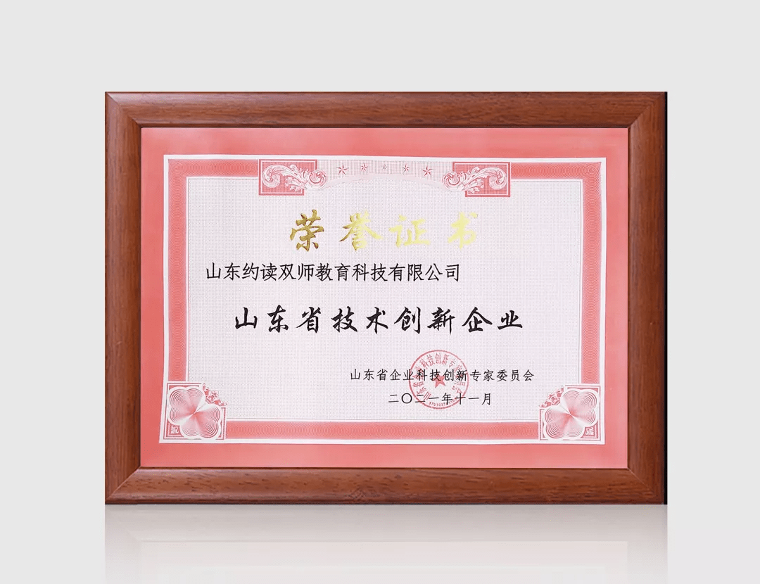 2021年11月,约读书房旗下子公司——山东约读双师教育科技有限公司获评“山东省技术创新企业”。