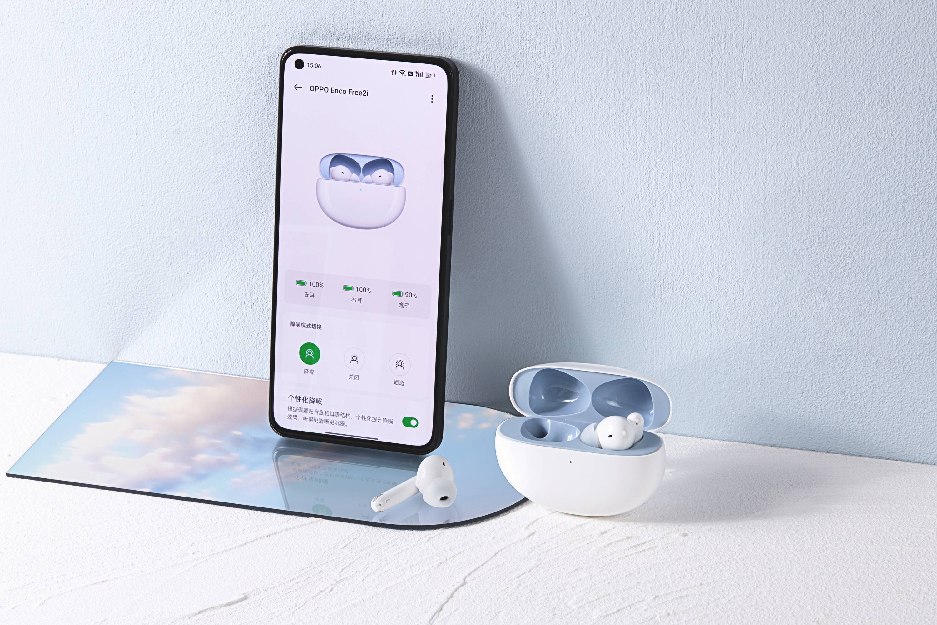 在降噪这一块,OPPO Enco Free2i也是继承了OPPO Enco Free2的优秀表现。它的降噪深度达到了42dB,能够有效对环境中的各类噪音进行降噪,为用户提供一个较为安静的环境。同时它还具备了个性化的降噪技术,针对佩戴者的耳道结构定制专属的降噪曲线,做到更加优秀的降噪效果。