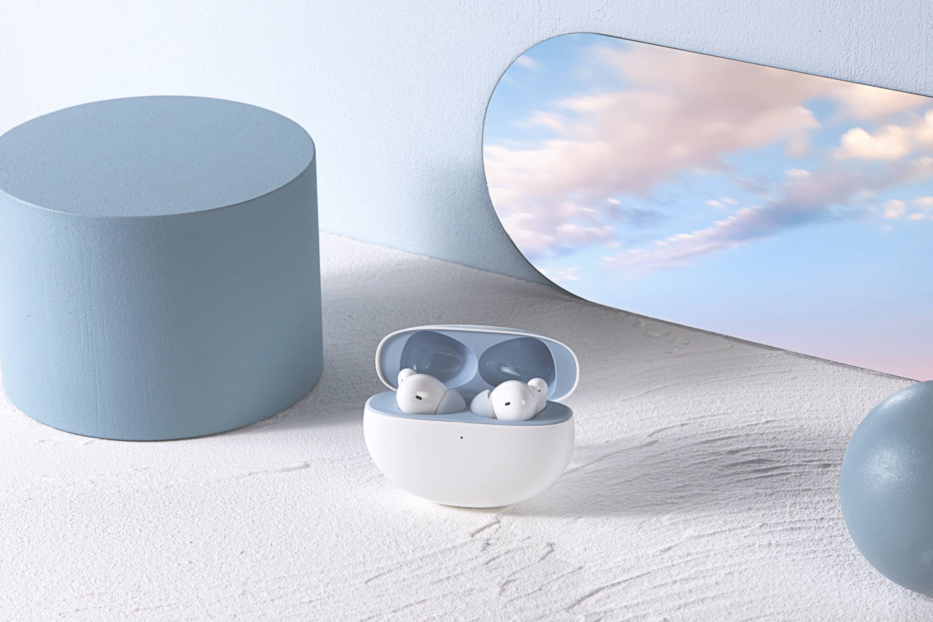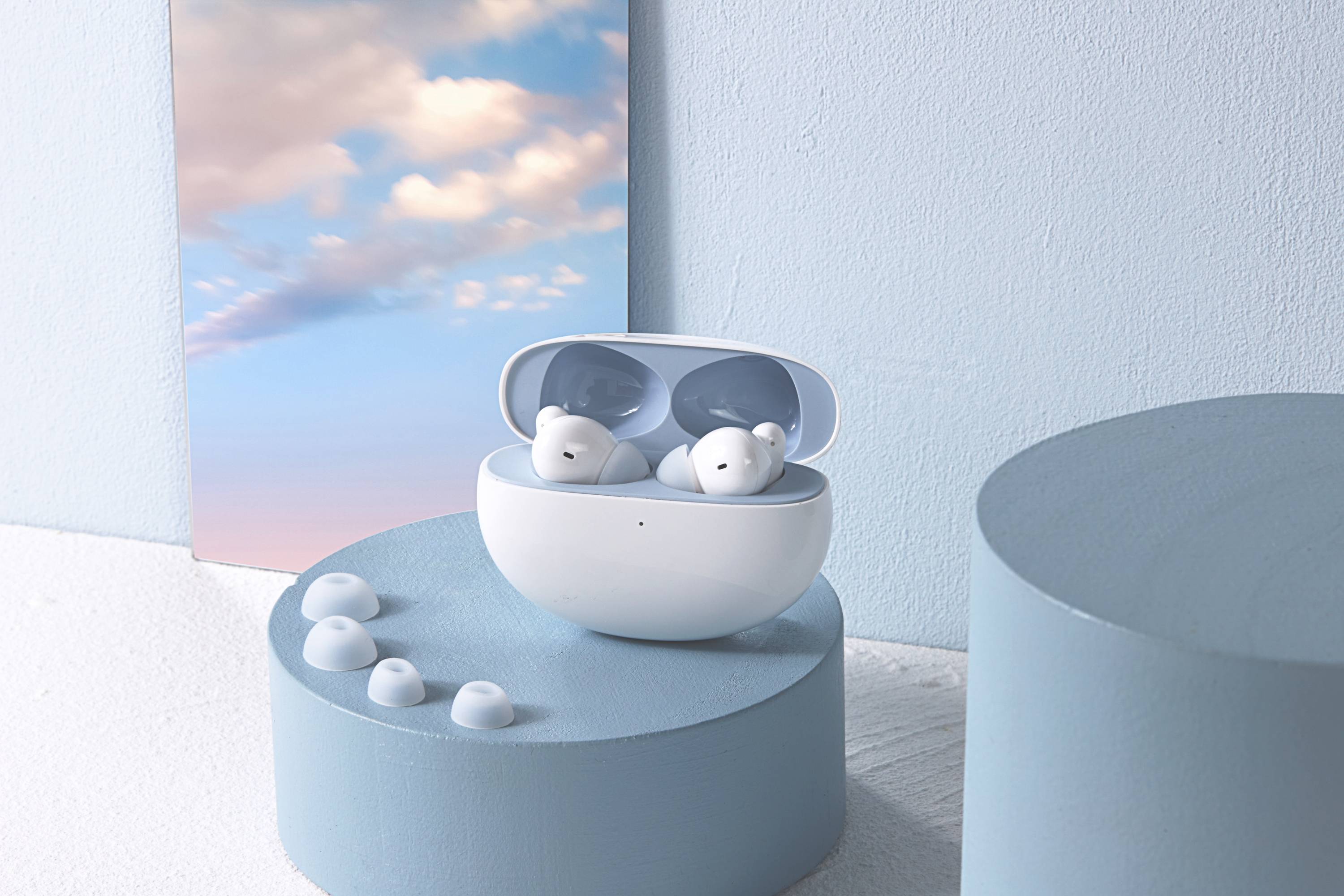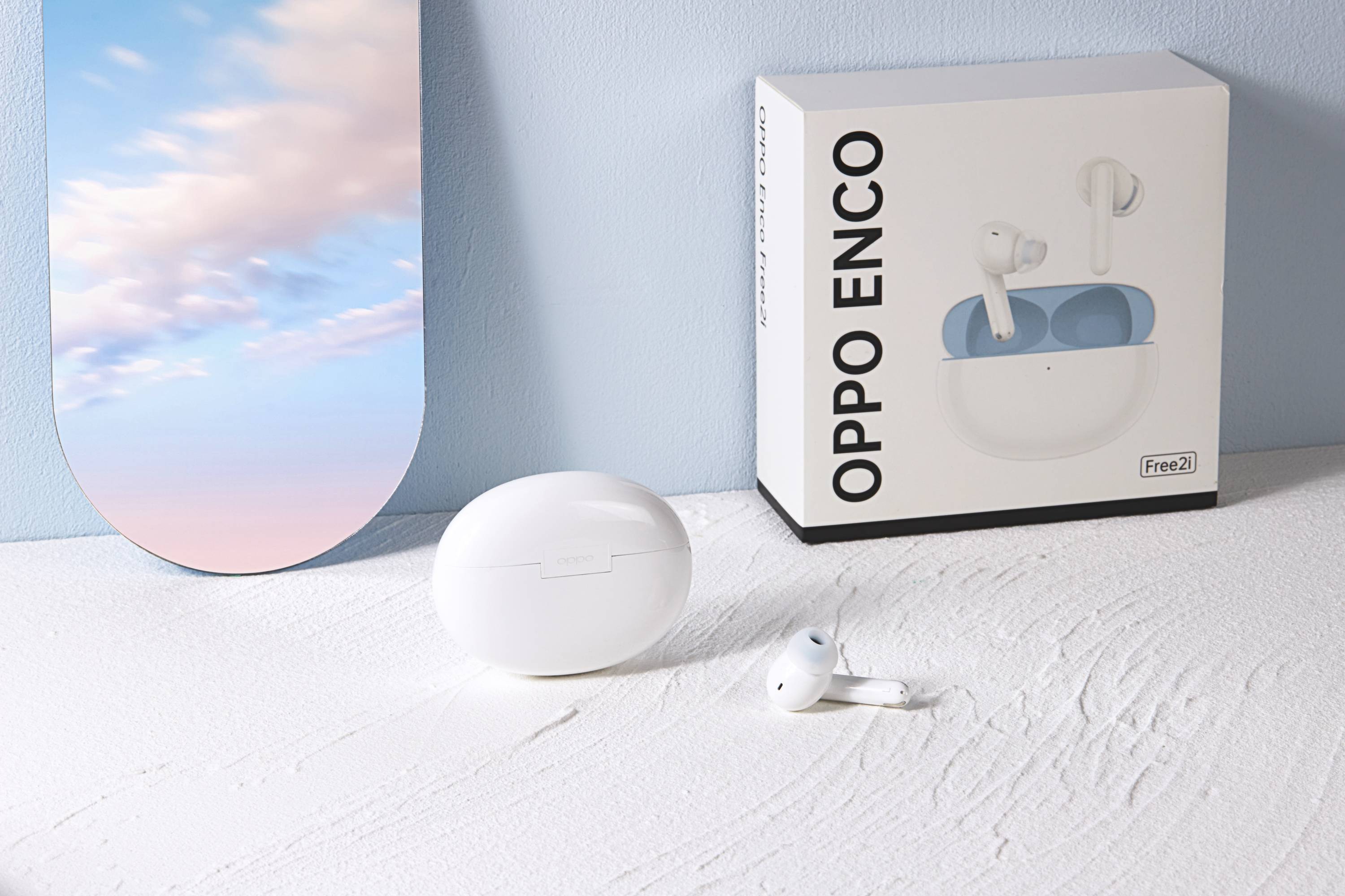 外观方面,一直都是OPPO比较拿手的,这款OPPO Enco Free2i也不例外,在设计上面依旧花了很多心思。与传统的椭圆形降噪耳机仓不同,OPPO Enco Free2i使用到了鹅卵石的设计,整体看起来要更加地圆润。同时耳机仓内还是用到了撞色的设计,内部的天蓝色和外部的云白色相映,非常地小清新,同时也符合到了很多年轻人的审美。
