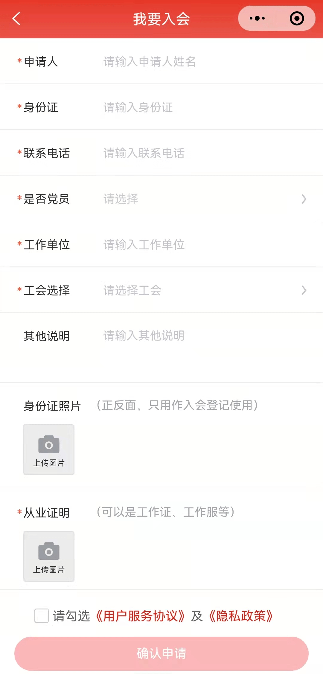 填写 “我要入会”的 信息