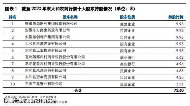安徽太和农村商业银行股份有限公司成立于2014年12月,前身系太和县农村信用合作联社。2020年,该行通过分红转best365中国官网增股本补充资本0.33亿元,截至2020年末实收资本为8.61亿元。截至2020年末,太和农商行前十大股东及持股情况分别是安徽华源医药集团股份有限公司(9.93 %)、安徽东方民生药业有best365中国官网限公司(9.93%)、 安徽徽创地产集团有限公司(9.93%)、太和县工业投资有限公司(9.93%)、 太和县西城建设有限公司(9.93%)、亳州药都农村商业银行股份有限公司(6.62%)、阜阳颍泉农村商业银行股份有限公司(4.96%)、太和县众意商贸有限公司(4.83%)、 太和县冠丰商贸有限公司(4.23%)、平舆三鑫置业有限公司 (3.31%)。