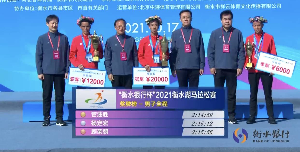 北京时间10月17日上午7点30分,2021衡水湖马拉松暨全国马拉松锦标赛(衡水站)在衡水湖马拉松广场鸣枪起跑。本届比赛也恰逢衡马10周年,共设置全马、半马以及健康跑三个项目。全程马拉松组包括了杨定宏、管油胜等在内的男子精英选手,女子组则由陈丽琴等选手参与争夺。经过激烈的比拼,最终在冲刺阶段千亿棋牌qy711二维码,管油胜战胜杨定宏以 2小时14分59秒的成绩夺得男子全马冠军,杨定宏以2小时15分12秒位列第二,顾荣朝以2小时15分56秒获得第三名。 女子冠军则由陈丽琴以2:40:02的成绩获得。