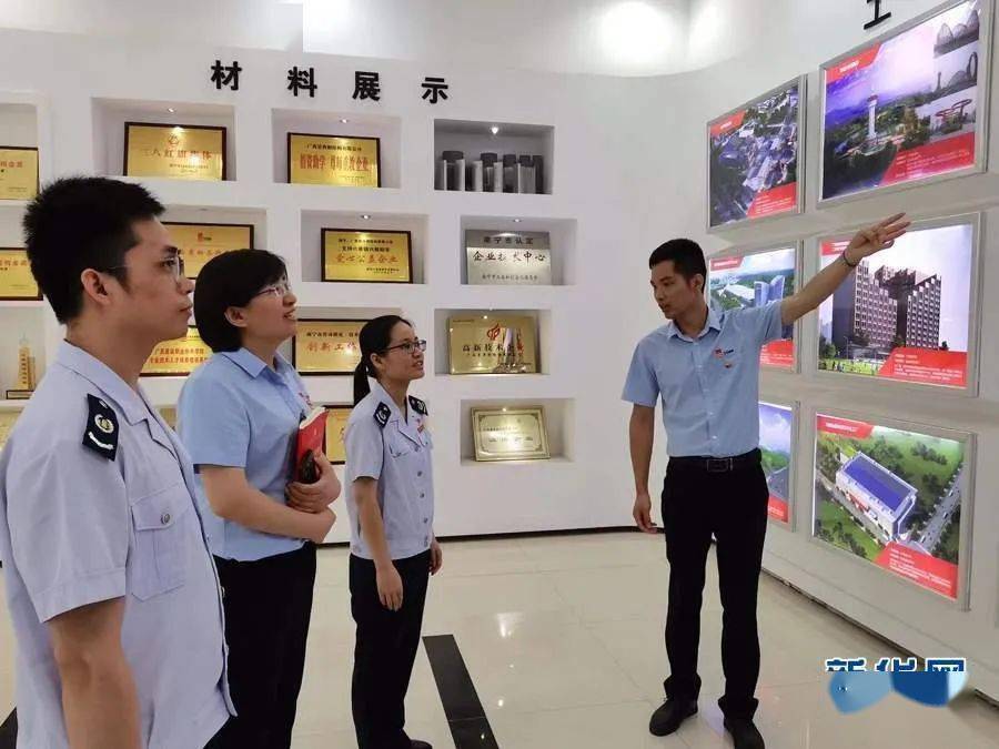 南宁高新技术产业开发区税务局工作人员走访广西田园生化股英皇体育登录网站份有限公司,为纳税人讲解研发费用加计扣除优惠政策。