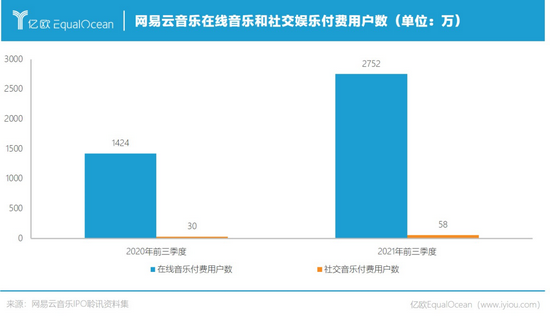 网易云音乐2021年前三季度MAU从去年同期的1.80亿增至1.84亿。分板块来看,在线音乐付费用户数为2752万,同比增长超93%,付费率达14.9%,位列行业第一;社交娱乐服务月活用户(MAU)为2110万,付费用户数同比增长93%至58万人,月度ARPPU为5千亿国际qy88vip04.1元。