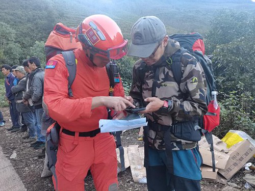 搜救人员在研究商量路线。本文图片均由受访者提供