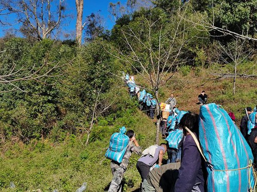 当地村民向补给站背运物资。本文图片均由受访者提供