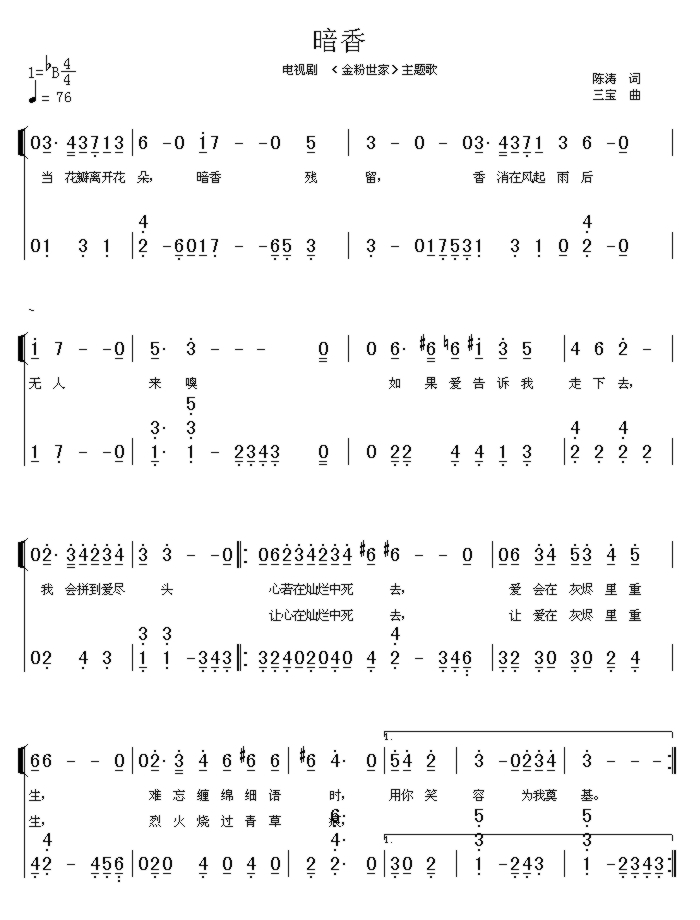 - 沙宝亮/姚贝娜 | 阆中之恋简谱
