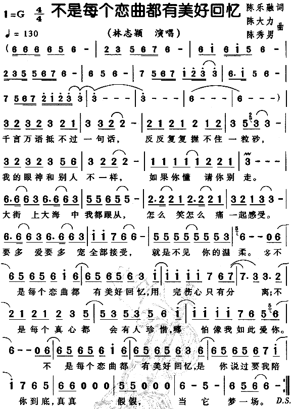 《不是每个恋曲都有美好回忆》简谱 林志颖