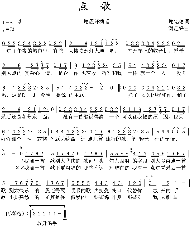 《点歌》简谱