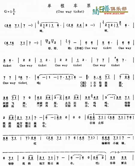 《one way ticket(单程车票)》简谱