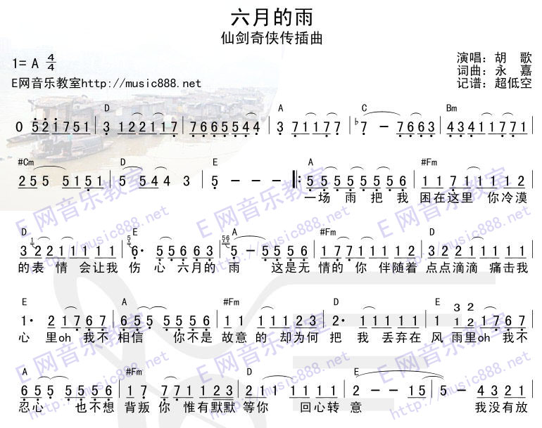 《六月的雨》简谱 胡歌