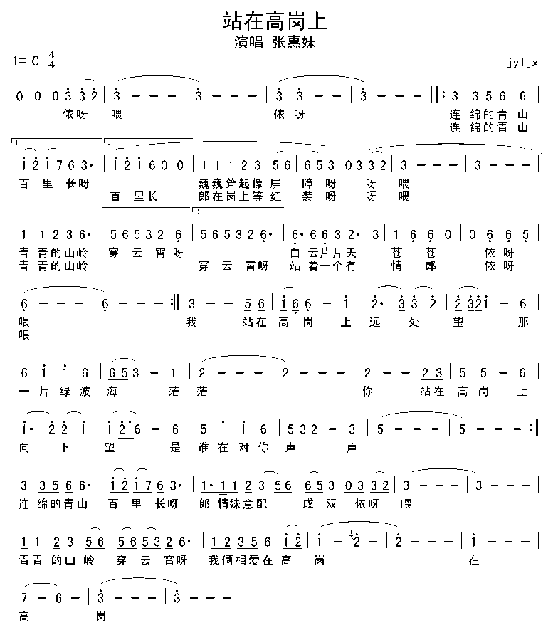 《站在高岗上》简谱 张惠妹 点这里
