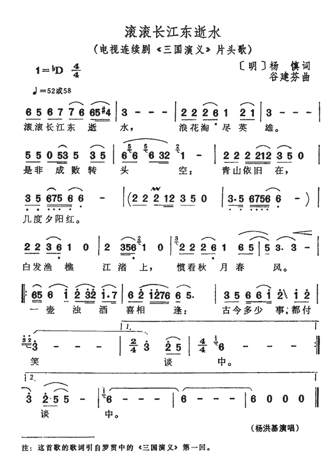 《滚滚长江东逝水》简谱 杨鸿基