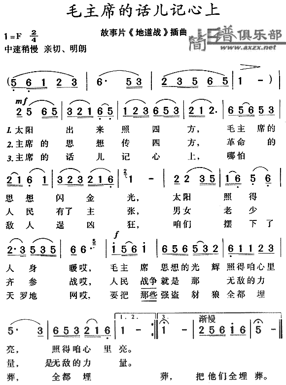 毛主席的话儿记心上(电影《地道战》插曲、7个版本)