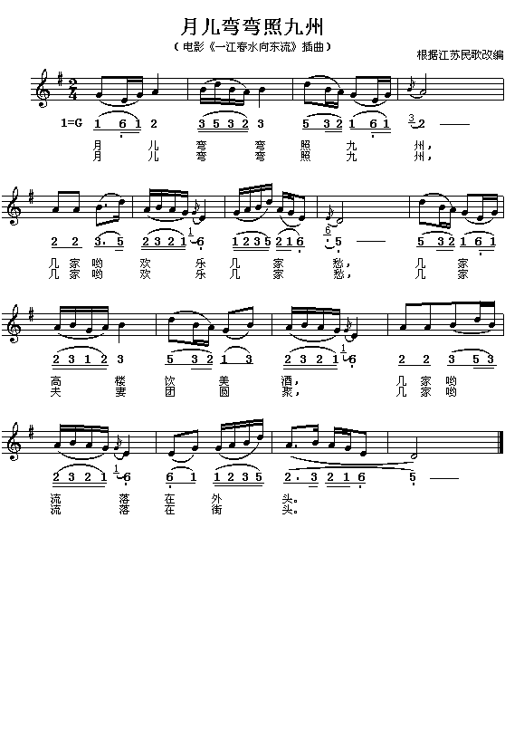 《月儿弯弯照九州》简谱