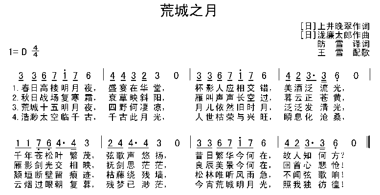《荒城之月》简谱 Moonlight Over The Ancient Castle