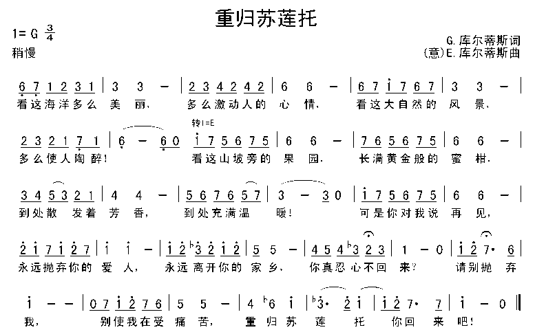 《重归苏莲托》简谱 重归苏莲托 萨克斯金曲 ...