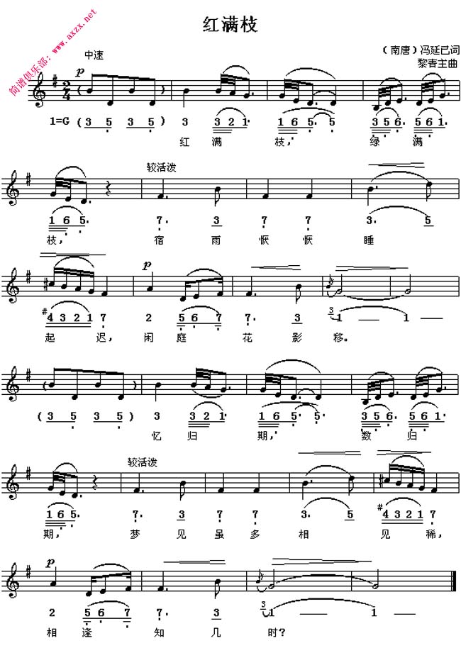 《红满枝》简谱