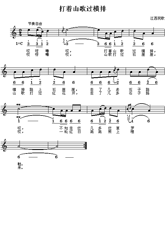 《打着山歌过横排》简谱