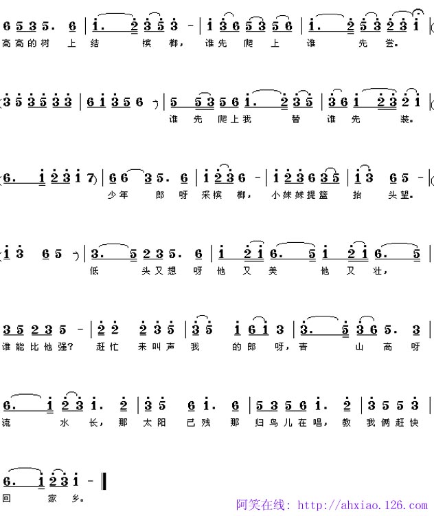 《采槟榔》简谱