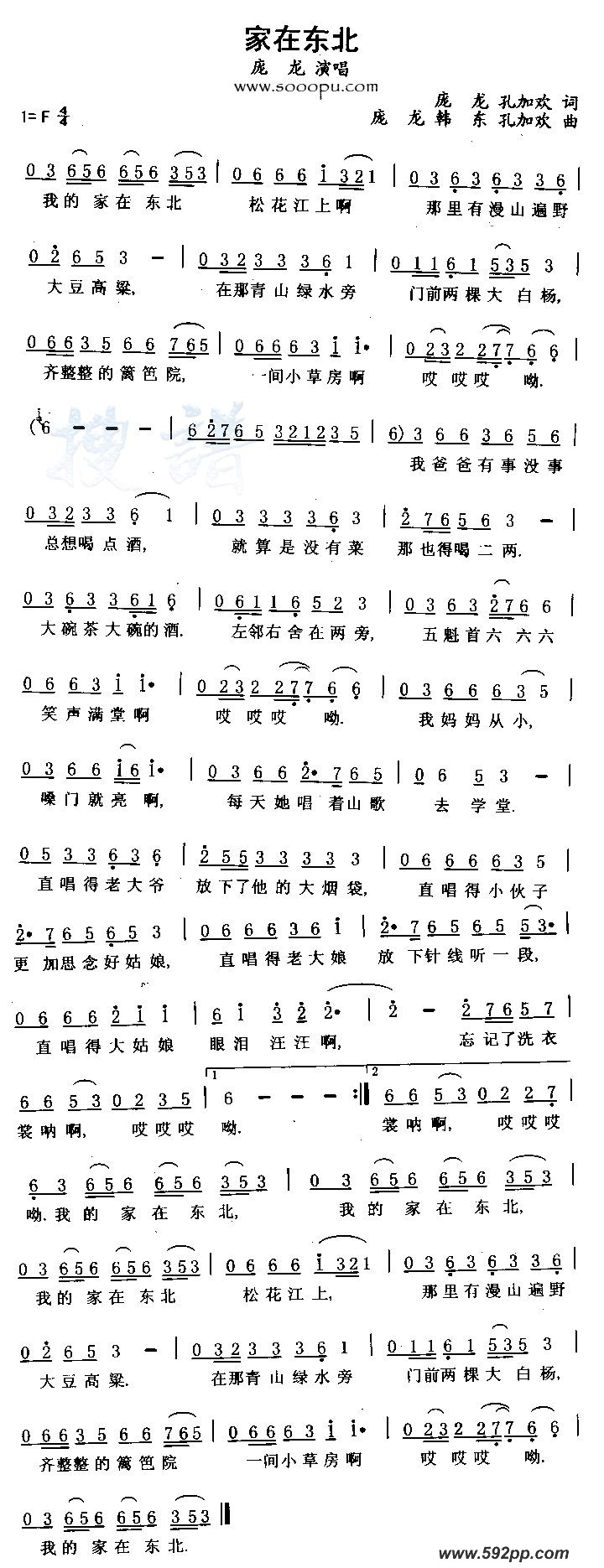 《家在东北》简谱