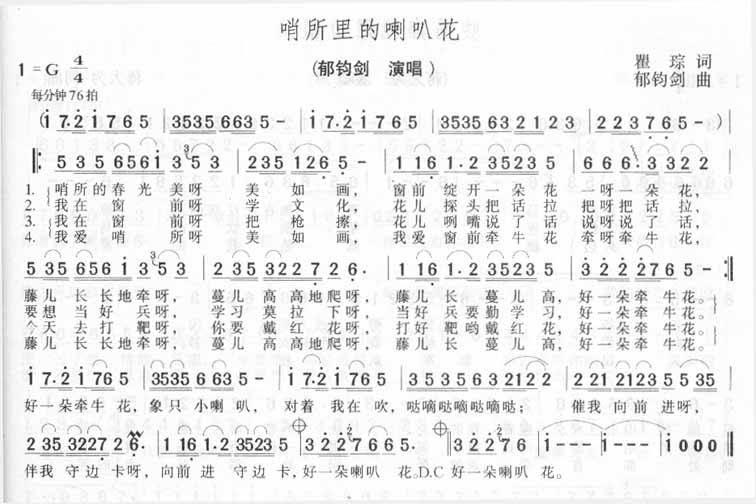 《哨所里的喇叭花》简谱