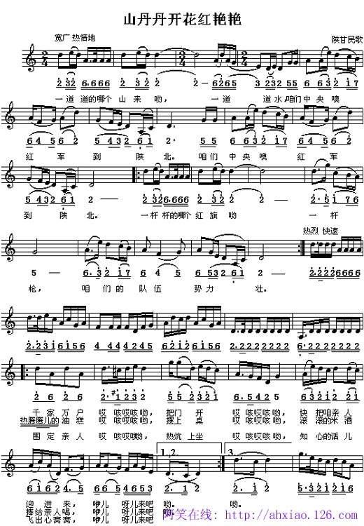 《山丹丹花开红艳艳》笛萧谱 点这里