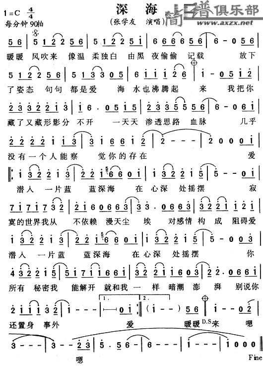 《深海》简谱 张学友