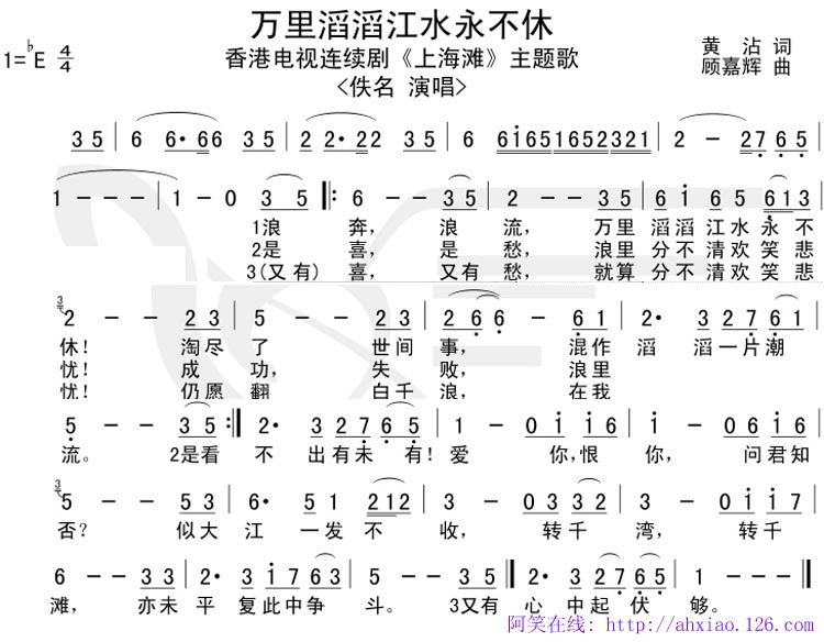 此际情也可永(周润发版《笑傲江湖》主题曲)简谱
