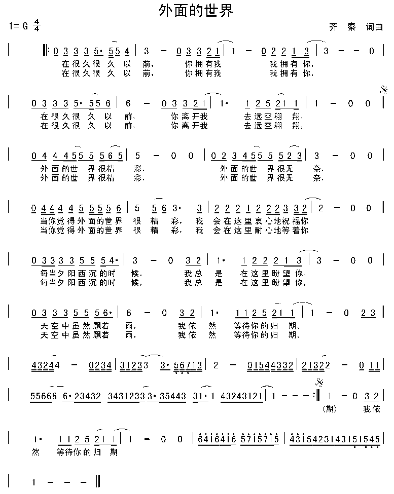 《外面的世界》简谱 齐秦
